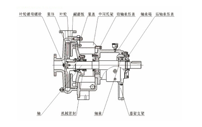 5)葉(ye)輪輪(lun)毂與(yu)泵蓋(gai)間有(you)較大(da)的錐(zhui)形空(kong)間,防(fang)止固(gu)相介(jie)🧑🏽🎄質進(jin)入軸(zhou)封。