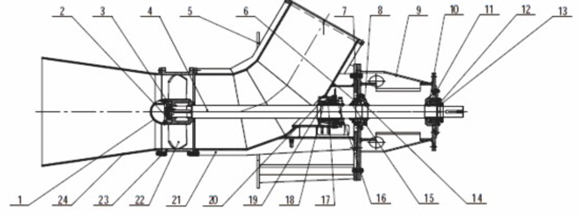 1-導流罩(zhao) 2-葉輪鎖(suo)緊蓋 3-葉(ye)輪卡環(huan) 4-軸 5-泵支(zhi)架 6-下軸(zhou)承壓蓋(gai) 7-下軸承(cheng)下😘擋套(tao) 8-下軸承(cheng)盤 9-軸承(cheng)支架 10-軸(zhou)承墊日(ri) 11-上軸承(cheng)盒 12-軸承(cheng)墊圈 13-上(shang)軸承壓(ya)蓋 14-下軸(zhou)承上擋(dang)目 15-下軸(zhou)承壓蓋(gai) 16-填料壓(ya)蓋組件(jian) 17-水封環(huan)😍 18-填料箱(xiang) 19-填料 20-軸(zhou)套 21-泵體(ti) 22-葉輪 23-短(duan)節 24-吸入(ru)錐管